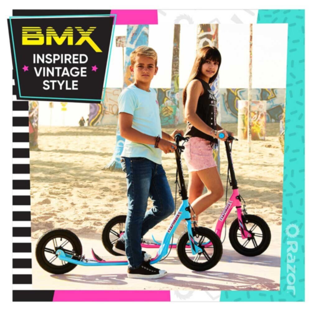 • تصميم أصيل مستوحى من دراجات BMX الكلاسيكية. تصميم أنيق وعصري بلمسات مستوحاة من الطراز القديم، بدءًا من الألوان الزاهية والجريئة وصولًا إلى مقود الدراجة المرتفع. صُمم هذا السكوتر للراكبين من عمر 8 سنوات فما فوق، وهو مثالي للأطفال والمراهقين وجميع عشاق دراجات BMX.