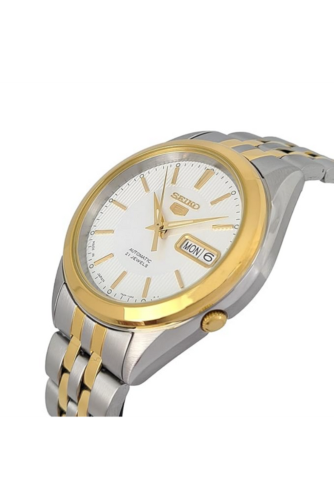 سيكو | ساعة أوتوماتيكية تناظرية من الفولاذ المقاوم للصدأ للرجال باللونين الفضي والذهبي | SNKL24J1Q