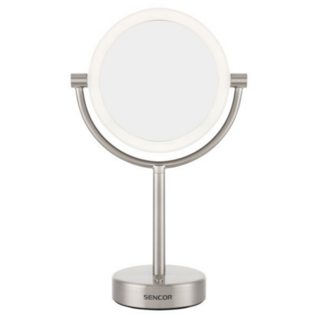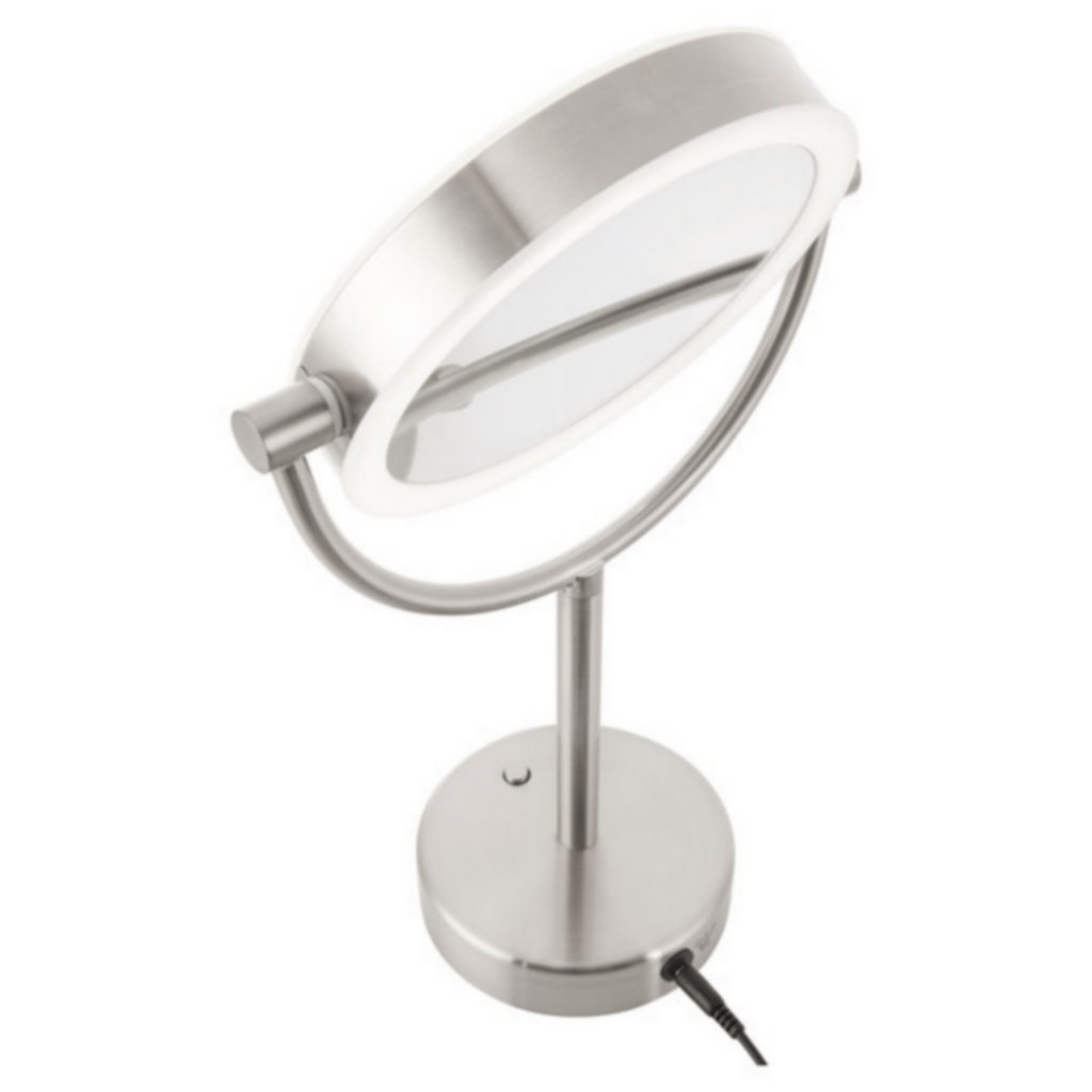 قطر ١٨ سم، تصميم مزدوج الجوانب، مُخصص للعناية الشخصية للنساء والرجال والمراهقين. يوفر أحد الجانبين انعكاسًا قياسيًا، بينما يوفر الجانب الآخر تكبيرًا خمسة أضعاف لضمان عناية مثالية بكل التفاصيل. إضاءة خلفية بتقنية LED، تشغيل اقتصادي (استهلاك أقصى ٥ واط)، إضاءة خلفية مزودة بمفتاح تشغيل/إيقاف يمكن استخدامه حتى مع الأيدي المبللة. إمكانية الإمالة الأفقية. تصميم كامل من الفولاذ المقاوم للصدأ. يعمل بالكهرباء. الأبعاد (العرض - العمق - الارتفاع): ٢٢٠ - ١٢٠ - ٣٦٠ مم، الوزن: ٠.٨ كجم
