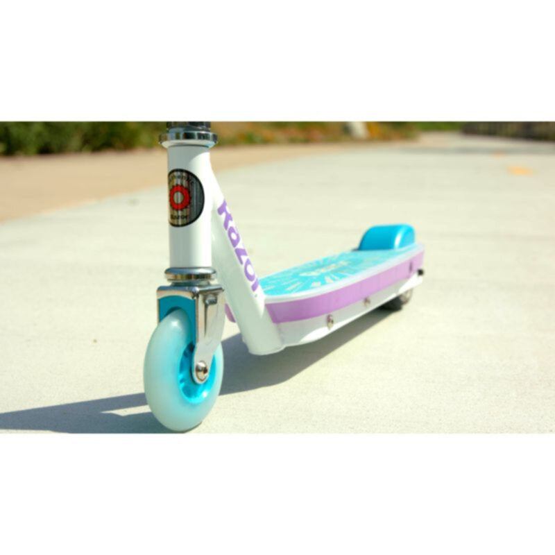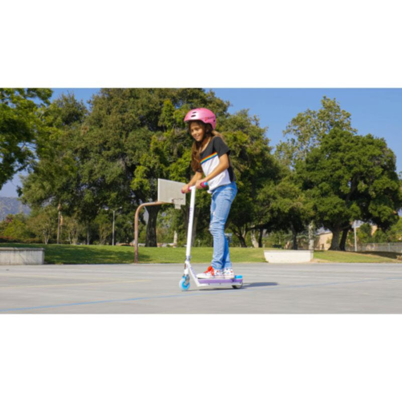 The Razor Electric Party Pop scooter bring the party with them wherever you go, turning your ride into a celebration with multi-color LED lights on and below the deck and a light-up, urethane front wheel. We’ve taken the best-selling Party Pop and added power! The rolling light show makes you the rock star with both multicolour LED front wheel and top and bottom deck lights! The Electric Party Pop can reach speeds of up to 12 km/h with a continuous run time of up to 30 minutes.