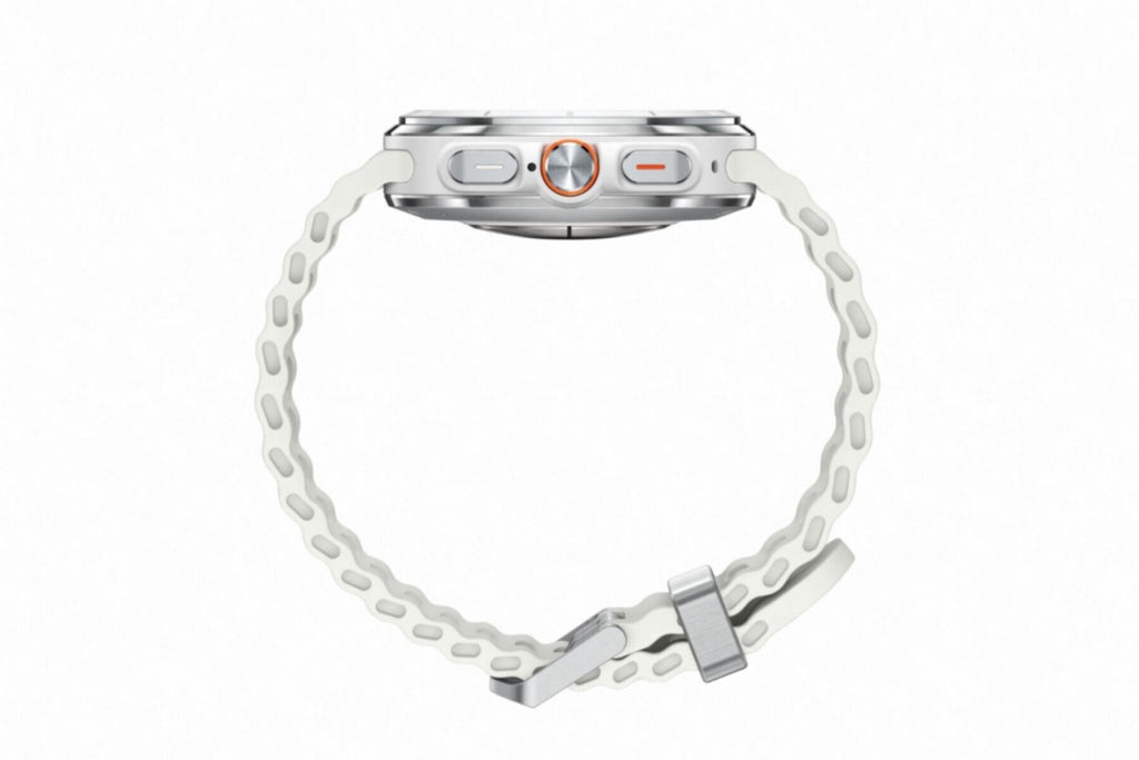 • نوع المنتج: ساعة ذكية • العلامة التجارية: سامسونج • اللون: أبيض • حجم الشاشة: 44 مم • دقة العرض: 480 × 480 • نظام التشغيل: Wear OS (المعروف سابقًا باسم Android Wear) • تقنية العرض: سوبر أموليد • اتصال الساعة: 4G/LTE • شاشة لمس: نعم • معلومات البطارية: 590 مللي أمبير • طريقة الشحن: الشحن اللاسلكي • الميزات والمواصفات: الميزات الرئيسية: المتانة: يتحمل درجات حرارة تصل إلى 55 درجة مئوية، وارتفاع 9000 متر، وضغط ماء يصل إلى 10 ضغط جوي. عمر البطارية: يدوم حتى 100 ساعة في وضع توفير الطاقة. المستشعرات: مستشعر حيوي نشط لتتبع متقدم. الذكاء الاصطناعي من جالاكسي: يوفر رؤى صحية مخصصة. التصميم: إطار من التيتانيوم مع زجاج كريستال الياقوت. مقاومة الماء: 10 ضغط جوي / IP68. درجة حرارة التشغيل: من -20 درجة مئوية إلى 55 درجة مئوية. نظام تحديد المواقع العالمي (GPS): تردد مزدوج لملاحة دقيقة. زر استغاثة وصفارة إنذار: زر استغاثة وصفارة إنذار للطوارئ من أجل السلامة. المواصفات: اللون: فضي تيتانيوم، رمادي تيتانيوم، أبيض تيتانيوم. الطاقة: بطارية تدوم طويلاً. سعة البطارية: 590 مللي أمبير، قابلة للشحن. البرامج: تتبع أنشطة رياضية متعددة، تحليل النوم، مراقبة معدل ضربات القلب. نوع الشاشة: AMOLED. السطوع: 2000 شمعة. الدقة: 480 × 480 بكسل. سعة التخزين: 16 جيجابايت. توافق الجهاز: أندرويد وiOS. نظام التشغيل: Wear OS. المستشعرات: تخطيط كهربية القلب، تخطيط التحجم الضوئي، تحليل المعاوقة الحيوية، نظام تحديد المواقع العالمي (GPS). عمر البطارية: يصل إلى 100 ساعة في وضع توفير الطاقة. نوع الشحن: شحن لاسلكي. التصميم: تيتانيوم مع زجاج كريستال الياقوت. مقاومة الماء: 10 ضغط جوي / IP68. الأبعاد: الوزن: 0.047 كجم. الأبعاد (العرض × الارتفاع × العمق): 47 × 47 × 14 مم. محتويات العلبة: ساعة سامسونج جالاكسي واتش ألترا، شاحن لاسلكي، دليل البدء السريع. • الوزن (غرام): 0.055 كجم • محتويات العلبة: ساعة سامسونج جالاكسي ألترا، كابل الشحن، دليل البدء السريع