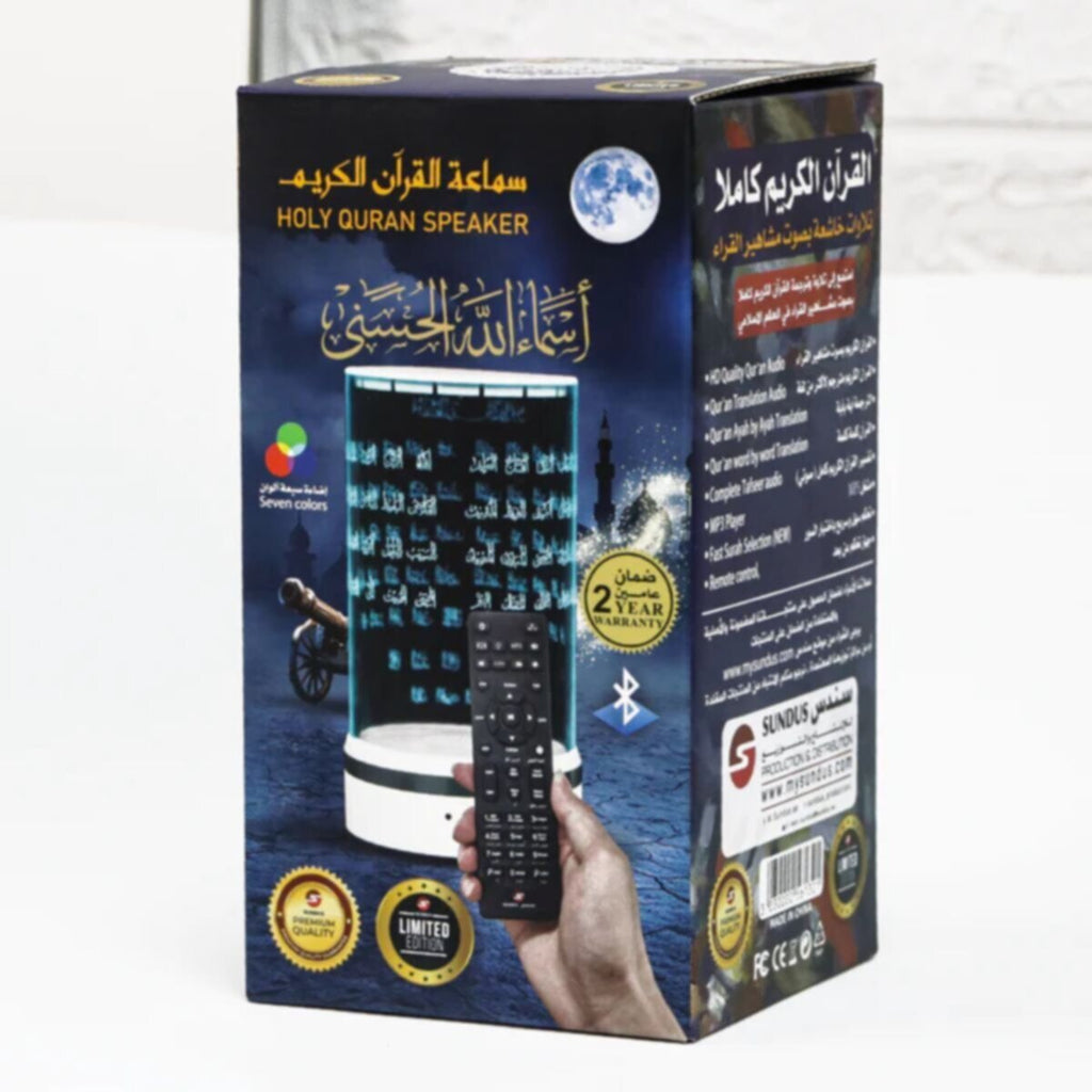 The speaker features colored lighting that changes automatically to create a calm and appropriate atmosphere during recitation, so that the Names of God shine