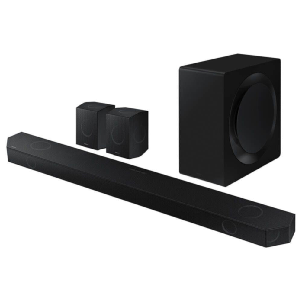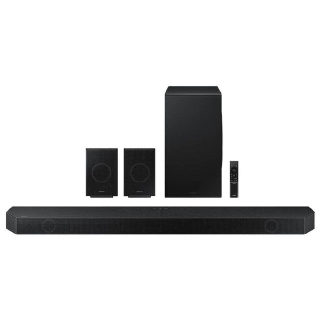 â—† Key Features: Key Features Wireless Dolby Atmos: Experience immersive 3D sound with wireless Dolby Atmos incorporated into Samsung Soundbar. True 11.1.4ch Sound: Enjoy unrivaled surround sound with 11 front and surround channels, 1 subwoofer channel, and 4 up-firing channels. Q-Symphony: Harmonize your TV and Soundbar for AI-optimized audio flowing through all channels. SpaceFit Sound Pro: Sound calibrated for your space to perfection, with room analysis and optimized bass. Specifications Color: Graphite Black Power: 0.5W (standby), 41W (main), 26W (subwoofer) Channels: 11.1.4 Connectivity: HDMI In (2), HDMI Out (1), HDMI ARC (Yes, eARC), HDMI CEC, Optical In (1), Bluetooth (5.2), Wi-Fi Speakers: 22 speakers including center, up-firing, front wide-firing, and side-firing speakers, wireless subwoofer, and wireless rear speakers Ports: HDMI In (2), HDMI Out (1), Optical In (1) Wattage: 0.5W (standby), 41W (main), 26W (subwoofer) Power Output: 0.5W (standby), 41W (main), 26W (subwoofer) Resolution: 4K Video Pass Refresh Rate: 120Hz Gaming Mode: Yes (Game Mode Pro) Series: Samsung Soundbar Dimensions Net Weight (Main Speaker): 7.7 kg Net Weight (Rear Speaker): 3.4 kg Net Weight (Subwoofer): 11.7 kg Gross Weight (One Packing): 28.2 kg Net Dimensions (Main Speaker): 1232.0 x 69.5 x 138.0 mm Net Dimensions (Rear Speaker): 129.5 x 201.3 x 140.4 mm Net Dimensions (Subwoofer): 220.0 x 413.0 x 410.0 mm Gross Dimensions (One Packing): 1309.0 x 595.0 x 277.0 mm Inside the Box Remote Controller Wall Mount Bracket