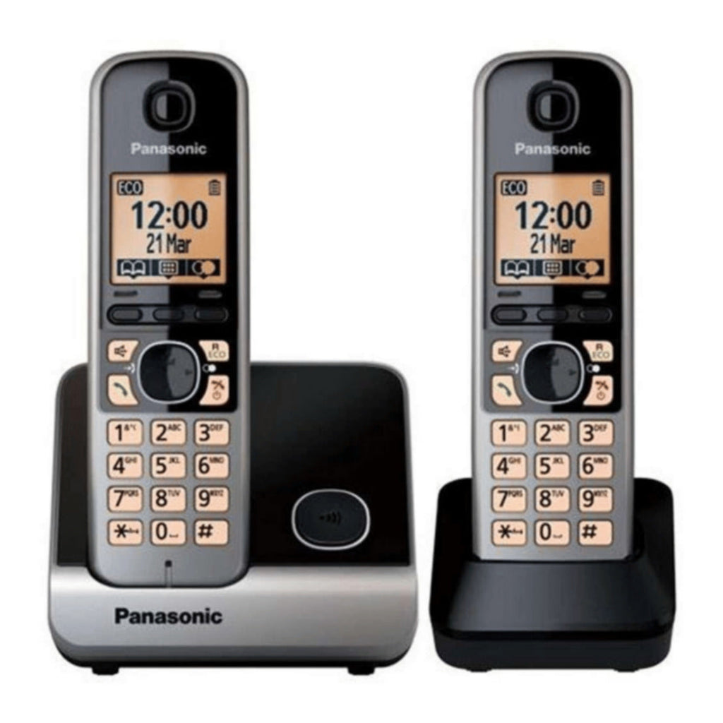 Enjoy premium quality with Panasonic DECT cordless phones.The new premium quality range of Panasonic Cordless DECT phones introduces the Panasonic KX-TG 6712. This sleek, ultra-modern home phone has an attractive handset featuring a well proportioned amber-illuminated keypad with comfortable buttons for easy use, ringer LED, and large 1.8 inch LCD amber-backlit display screen. The ergonomic base station reflects the curves of the handset and gives the KX-TG 6712 a highly integrated and unified appearance.