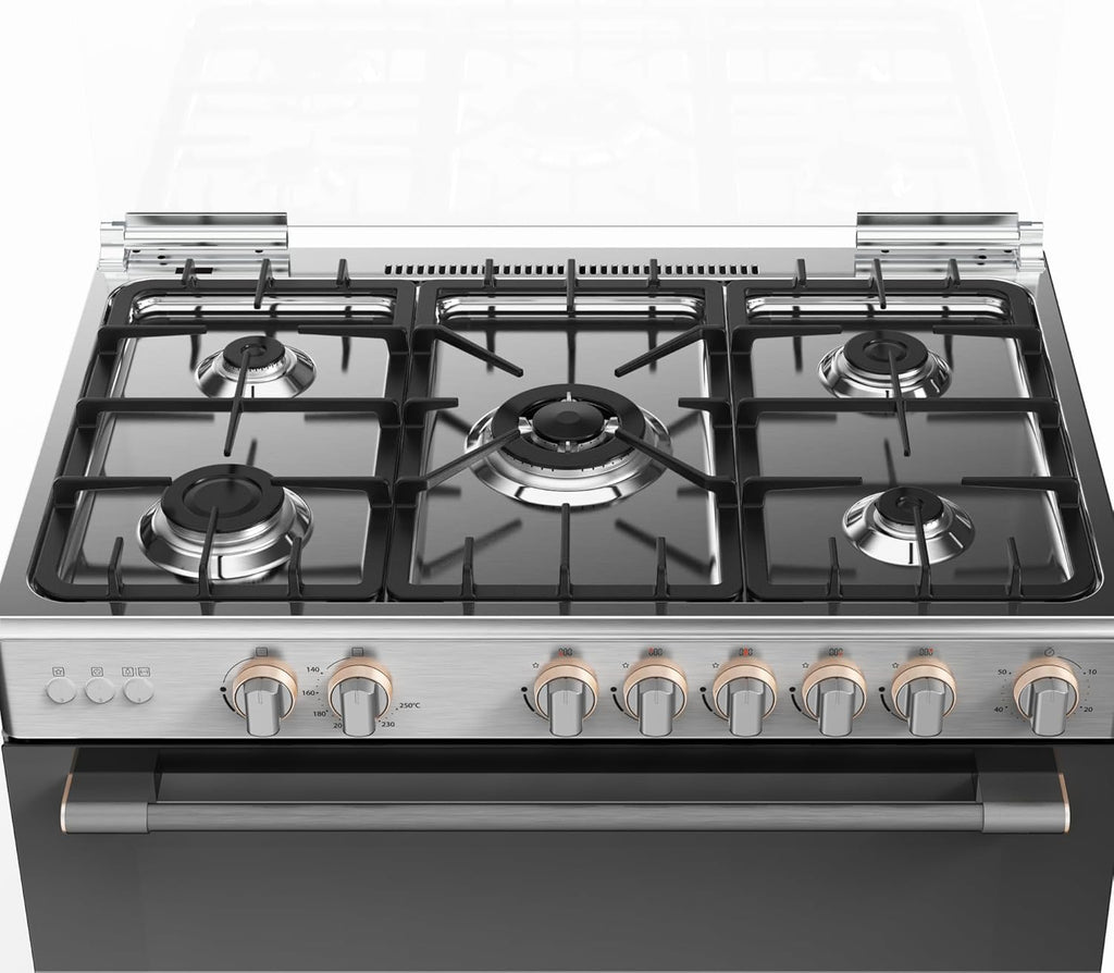 Sleek, modern, and sophisticated, the Toshiba Gas Cooking Range adds a touch of elegance to any kitchen. Its soft matte charcoal grey finish, accented with rose gold details, redefines the classic oven look, setting a new standard for contemporary home appliances. Designed for timeless appeal, it seamlessly complements any kitchen style with its refined and luxurious appearance.