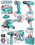 • الجهد: 20 فولت، مع مفتاح ربط صدمي واحد يعمل ببطارية ليثيوم أيون (TIWLI2038)، مع مثقاب لاسلكي واحد يعمل ببطارية ليثيوم أيون (TDLI20051)، مع مطرقة دوارة واحدة تعمل ببطارية ليثيوم أيون (TRHLI20228)، مع جلاخة زاوية واحدة تعمل ببطارية ليثيوم أيون (TAGLI201158)، مع مصباح عمل واحد (TWLI2023)، مفتاح ربط صدمي يعمل ببطارية ليثيوم أيون (TIWLI2038)