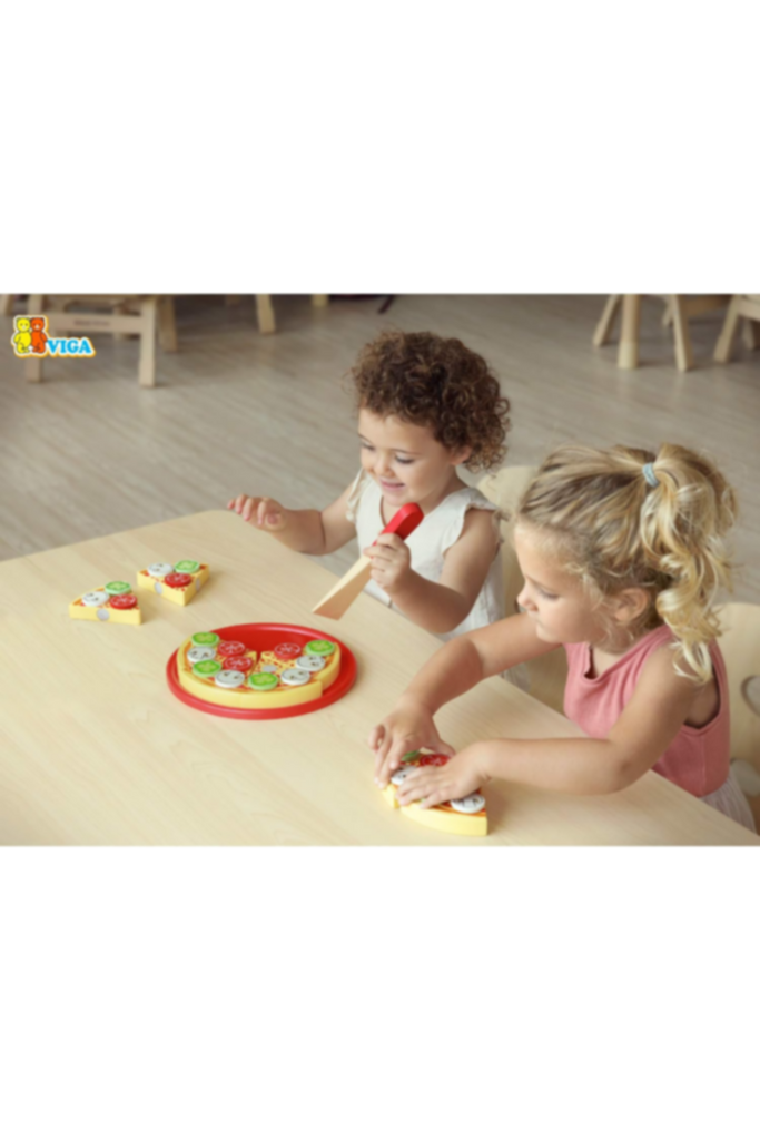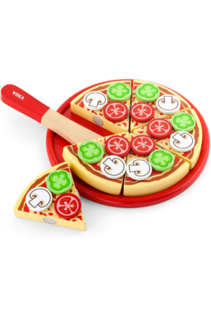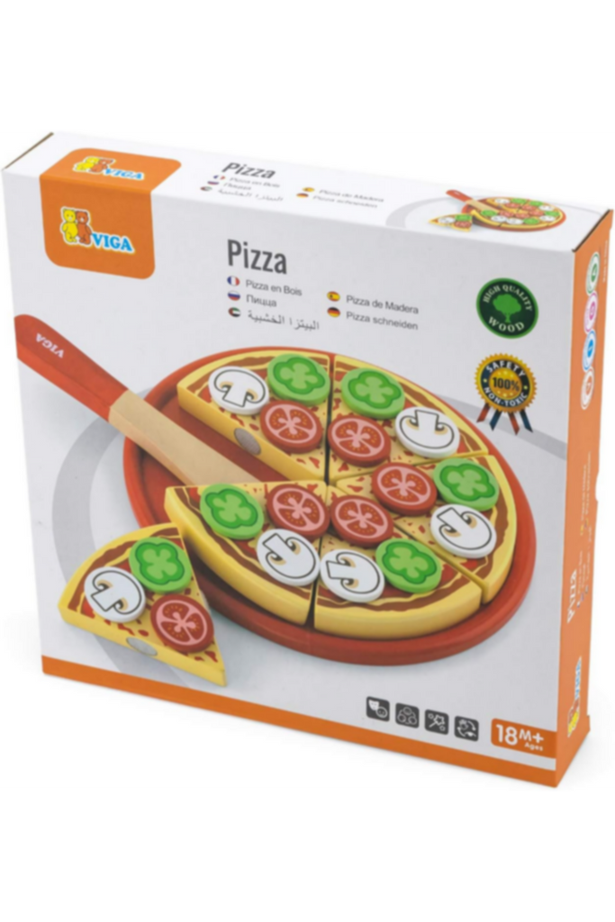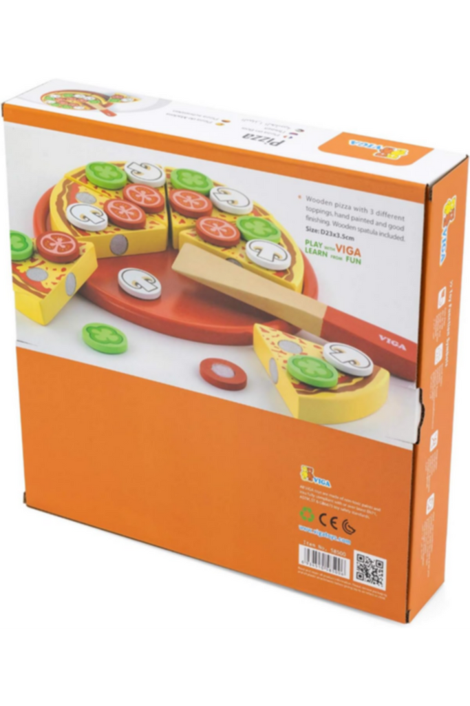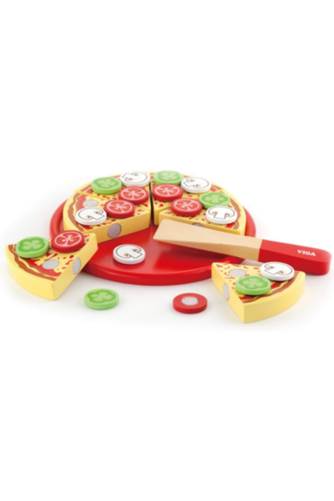 VIGA | Pretend Play Wooden Cutting Pizza Set Toy For Kids Ages 3+ Years | 58500