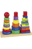 • نسخة مبتكرة من لعبة بناء الأبراج الكلاسيكية بثلاثة أوتاد، حيث يمكن للطفل بناء ثلاثة أبراج مختلفة، لكل منها شكل مكعبات خاص به ومستوى صعوبة مختلف. هذا يُنمّي فهم الطفل للحجم والشكل واللون وحاسة اللمس لديه.
