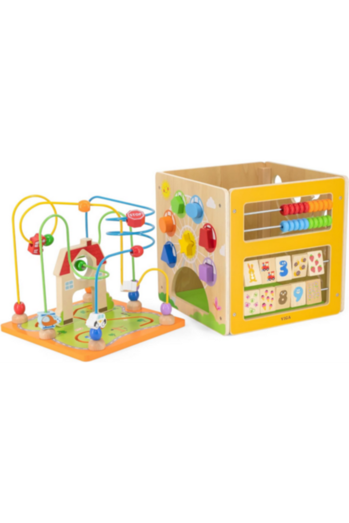 صندوق ألعاب خشبي 5 في 1 للأطفال من عمر 18 شهرًا فما فوق