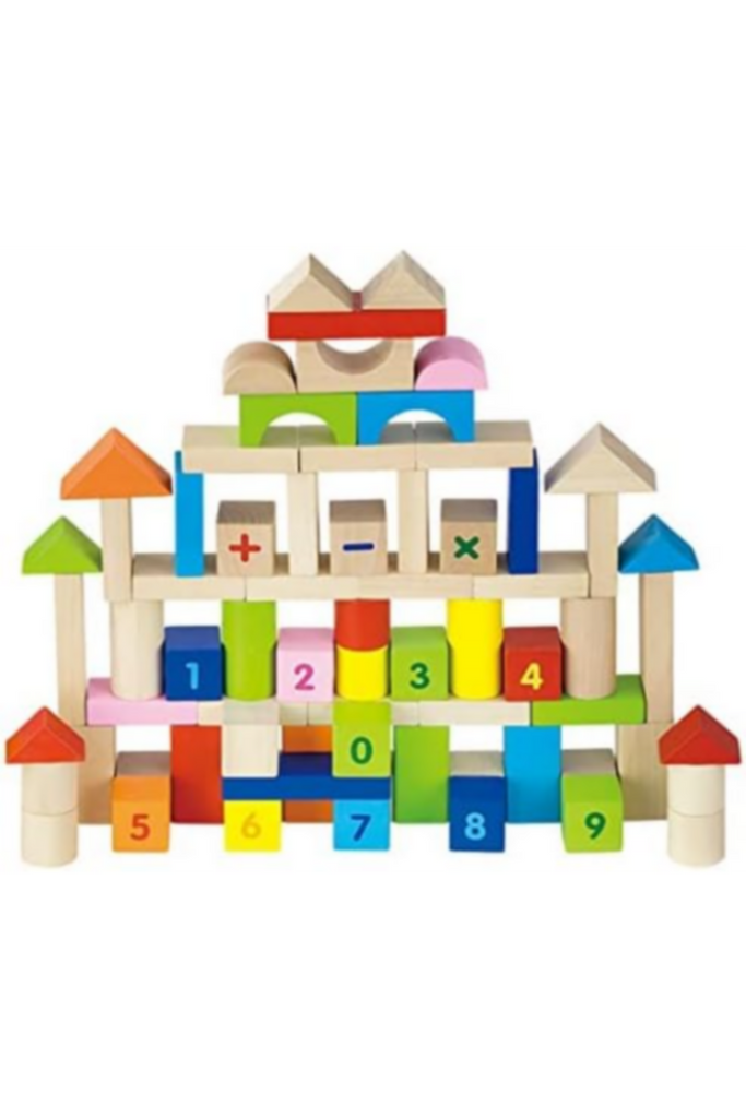 • مكعبات كلاسيكية مصنوعة من خشب عالي الجودة، مطلية بألوان زاهية. معبأة في دلو من الورق المقوى لسهولة التخزين.