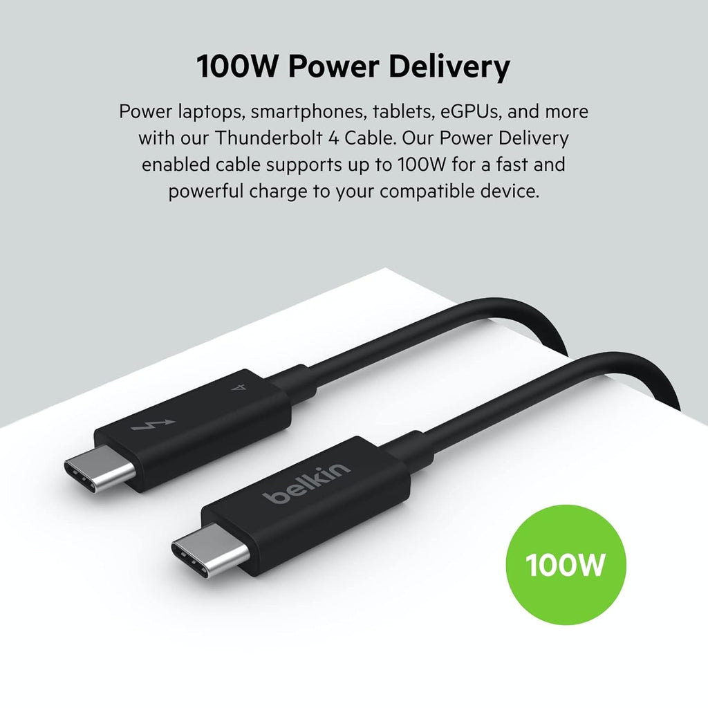 The Belkin Thunderbolt 4 Cable 1M Passive is a high-performance cable designed to deliver ultra-fast data transfer speeds, high-definition video output, and robust power delivery—all through a single, compact solution. Thunderbolt 4 certified and USB4 compliant, this cable supports data transfer rates up to 40Gbps, power delivery up to 100W, and video output up to 8K resolution. Its passive design ensures flexibility and durability, making it ideal for connecting laptops, smartphones, tablets, and other USB-C enabled devices. Whether you're transferring large files, connecting to high-resolution displays, or charging your devices, this 1-meter cable offers reliable performance and broad compatibility.