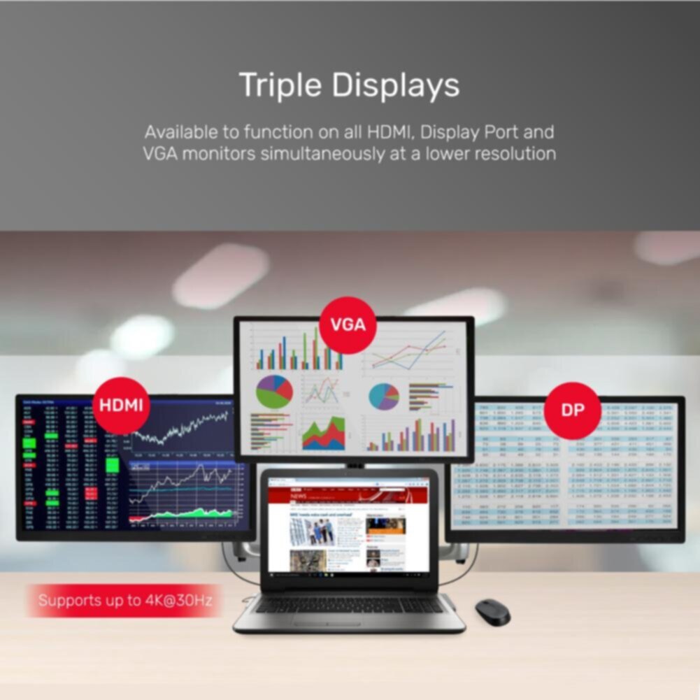 | في اتجاه مجرى النهر | منفذان USB 3.1 من الجيل الأول من النوع A، منفذ USB 2.0 من النوع A، منفذ USB-C واحد لإدخال PD، منفذ HDMI واحد، منفذ DisplayPort واحد، منفذ VGA واحد، منفذ صوت 3.5 ملم واحد، منفذ إيثرنت جيجابت RJ45 واحد، فتحة بطاقة SD واحدة • منفذان USB A 3.1، معدل نقل يصل إلى 5 جيجابت في الثانية؛ مع شحن سريع وفقًا للمواصفات. • BC 1.2 لتوصيل وشحن جهاز USB بسرعة (5 فولت / 1.5 أمبير) • قارئ بطاقة SD واحد بسرعة نقل قصوى تبلغ 100 ميجابت في الثانية • قارئ بطاقة microSD واحد بسرعة نقل قصوى تبلغ 100 ميجابت في الثانية • مخرج صوت واحد 3.5 مم • حامل هاتف محمول قابل للطي عدد 1 • منفذ USB A 2.0 واحد، سرعة نقل تصل إلى 480 ميجابت في الثانية • منفذ واحد من نوع USB-C لتوصيل الطاقة مع الملف التعريفي 5 (حتى 20 فولت / 4.25 أمبير، بحد أقصى 85 واط) • منفذ إيثرنت واحد من نوع GLAN RJ 45، بسرعة 10/100/1000 ميجابت في الثانية • واجهة رسومية: منفذ HDMI واحد بدقة قصوى 4K/30Hz، منفذ DisplayPort واحد بدقة قصوى 4K/30Hz، منفذ VGA واحد بدقة قصوى 1080p/60Hz. يدعم وظيفة MST. • ملاحظة: تعمل وظيفة MST مع نظام التشغيل Windows فقط بدلاً من نظام التشغيل Mac OS. |