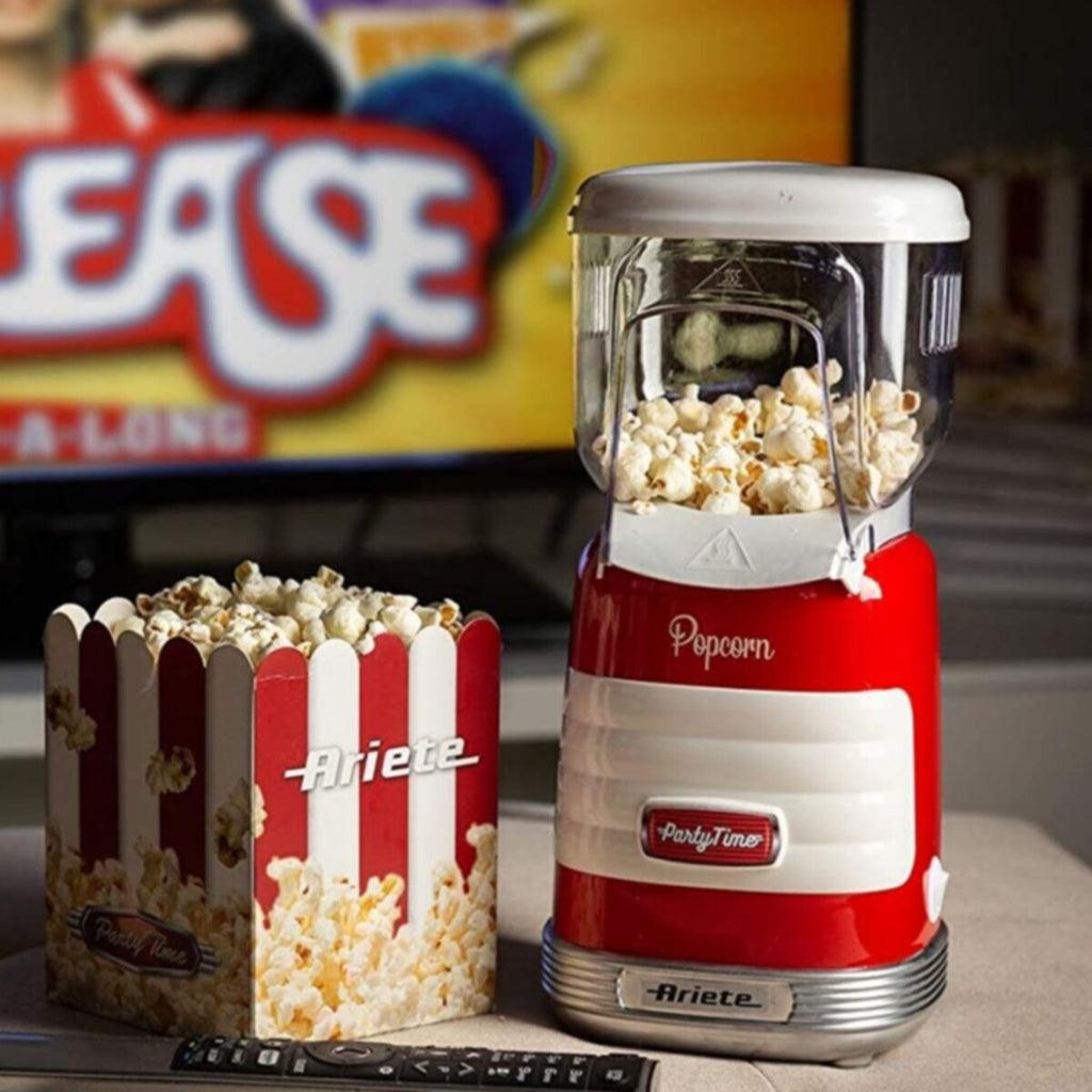 ستكون آلة صنع الفشار هذه من مجموعة "بارتي تايم" الجديدة من "أرييتي" رفيقتك في أمسياتك مع العائلة أو الأصدقاء، حيث تُقدم لك كميات وفيرة من الفشار المقرمش واللذيذ لتستمتع بتناوله دون توقف. بفضل طريقة الطهي بالهواء الساخن الخاصة، تُحوّل آلة "بارتي تايم" 60 غرامًا من الذرة إلى فشار خفيف ذي رائحة شهية في أقل من دقيقتين. لا حاجة لإضافة أي شيء آخر كالزيت أو الدهون للحصول على وجبة خفيفة لذيذة وطبيعية تمامًا وخالية من الدهون.
