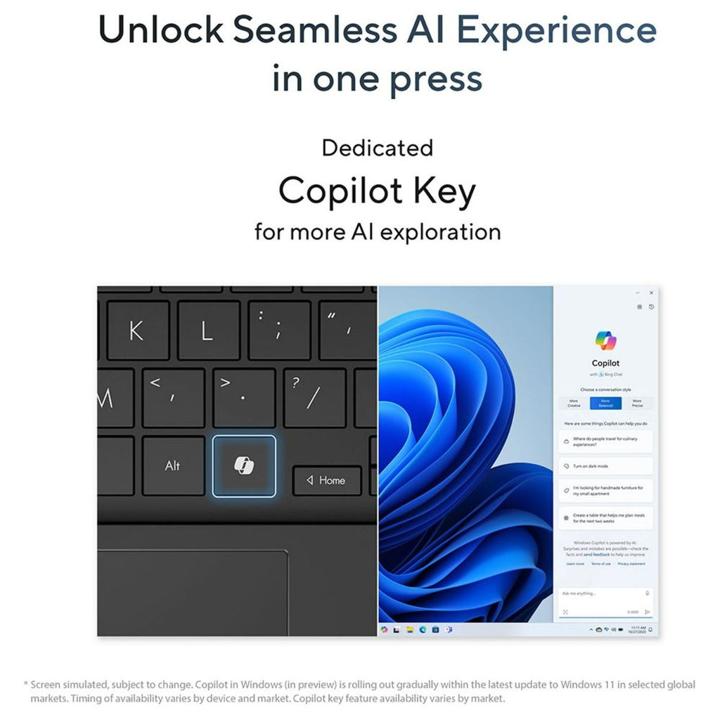 • ميزات محسّنة بالذكاء الاصطناعي: مفتاح Copilot المخصص ووحدة معالجة الشبكة العصبية Intel AI Boost NPU يعززان الإنتاجية ويبسطان سير العمل من خلال إمكانيات مدعومة بالذكاء الاصطناعي.
