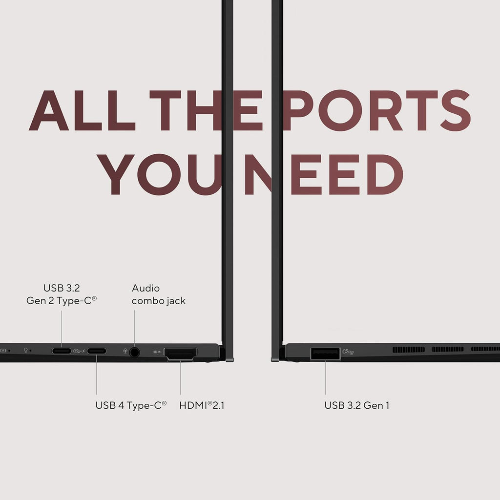 • الشاشة: شاشة OLED عالية الدقة بالكامل (1920 × 1200) مقاس 14 بوصة بنسبة عرض إلى ارتفاع 16:10، مما يوفر ألوانًا زاهية وتفاصيل حادة.