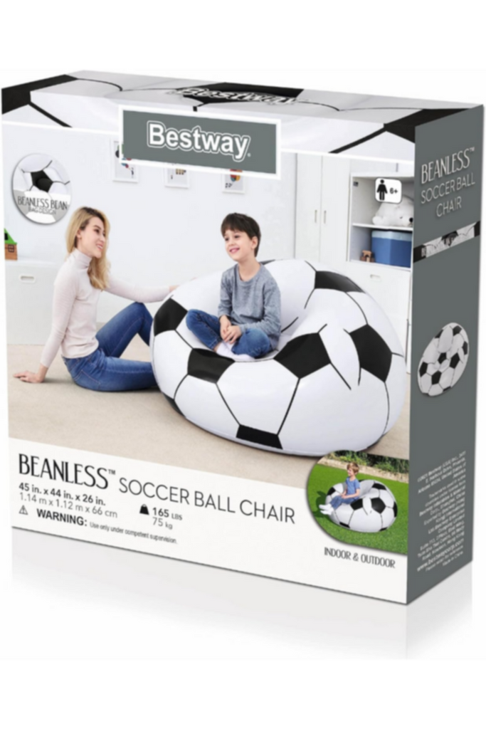 كرسي كرة القدم "أب، إن آند أوفر" من بيست واي، بدون حشوة، مثالي للأولاد والبنات الذين يعشقون كرة القدم أو الرياضة عمومًا. يتميز الكرسي بهيكل متين من الفينيل يتحمل الاستخدام اليومي للأطفال. سهولة النفخ تجعل من الممكن تجهيزه بسرعة. إضافة مثالية لغرفة الأطفال أو غرفة الألعاب.