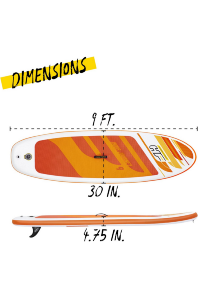 • لوح تجديف قابل للنفخ بطول 9 أقدام يتحمل وزنًا يصل إلى 100 كجم (220 رطلاً)، مثالي للبالغين