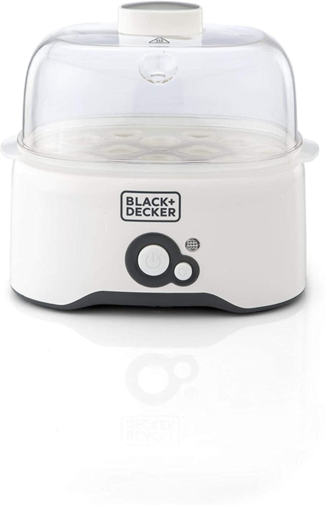 • يشمل: جهاز طهي البيض، غطاء، صينية تتسع لـ 6 بيضات، 2 أداة لسلق البيض، قاعدة، كوب قياس مع أداة لشفط البيض (80 مل)، ودليل المستخدم