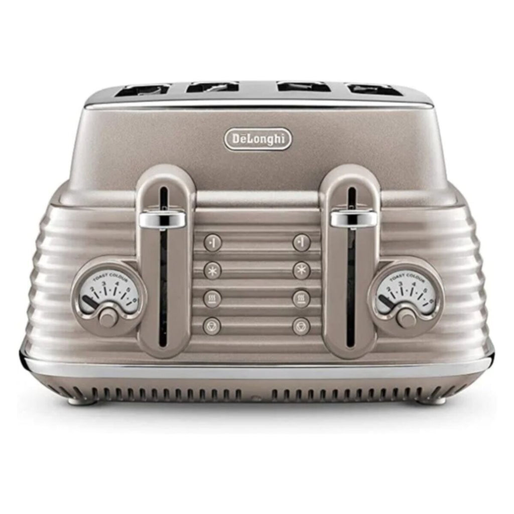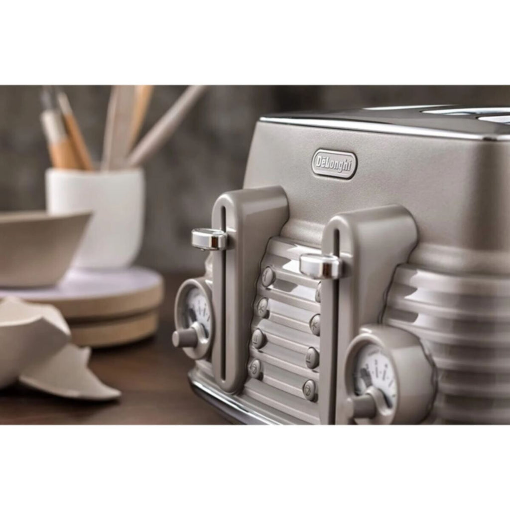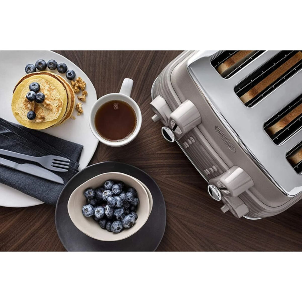 • محمصة ديلونجي سكولبيتو ذات 4 فتحات، إعادة تسخين، إذابة الثلج، خبز بيغل من جانب واحد و6 إعدادات للتحميص، مصنوعة من الفولاذ المقاوم للصدأ، CTZS4003.BG، لون بيج طيني.