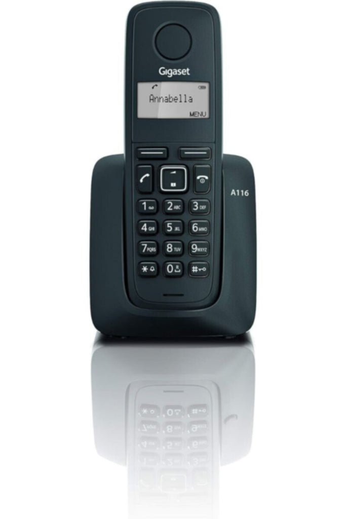 يتميز هاتف Gigaset A116 اللاسلكي الموثوق بسعره المعقول ووظائفه الأساسية: أزرار حساسة للضغط تجعل الاتصال مريحًا، وإعداد سهل وسريع يتيح لك استخدامه فور إخراجه من العلبة. ولضمان استمرار الأداء الجيد، يمكن لهاتف Gigaset A116 إجراء مكالمات لمدة تصل إلى 12 ساعة أو البقاء في وضع الاستعداد لمدة تصل إلى 130 ساعة دون الحاجة إلى إعادة الشحن.