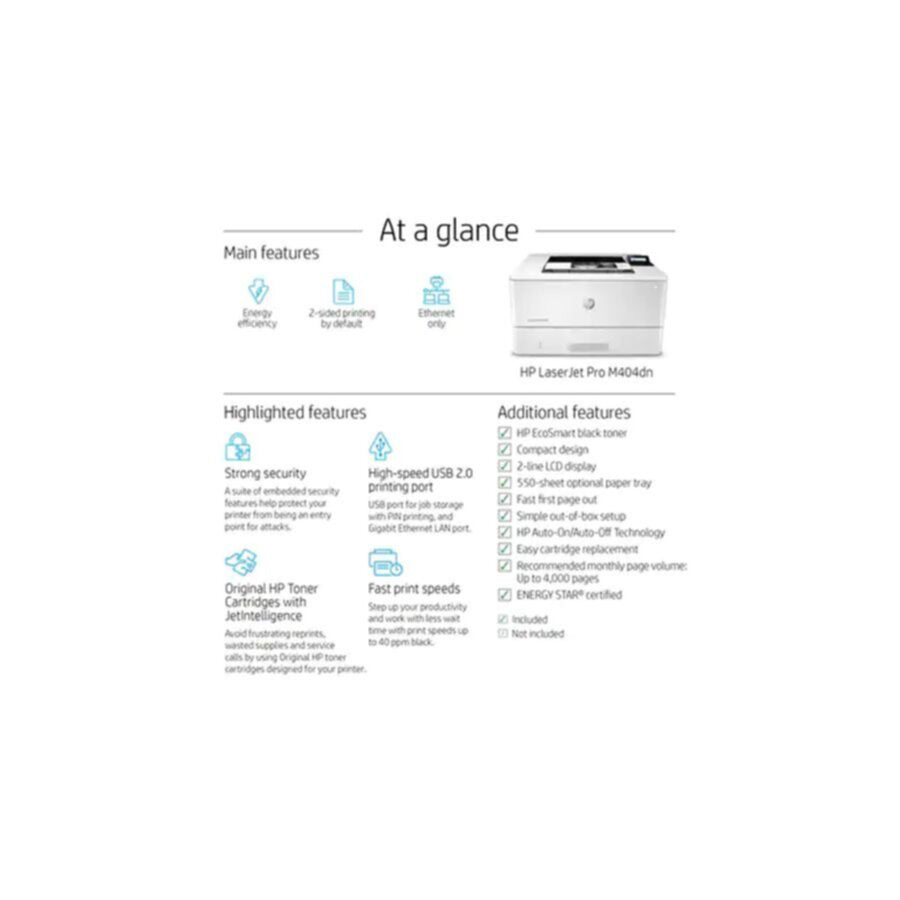 Winning in business means working smarter. The HP LaserJet Pro M404 printer is designed to let you focus your time where it’s most effective-helping to grow your business and staying ahead of the competition.Workteams excel with HP’s black-and-white office LaserJet printers, which pack extra punch with high-quality results, extra power, and more features.