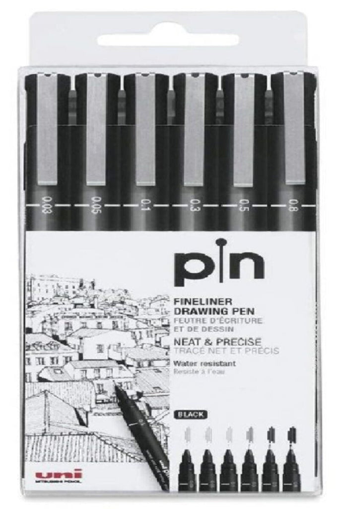 MITSUBISHI | Uni Pin Fine Liner PAC=06 Ea Black Gray | MI-PIN200-06C