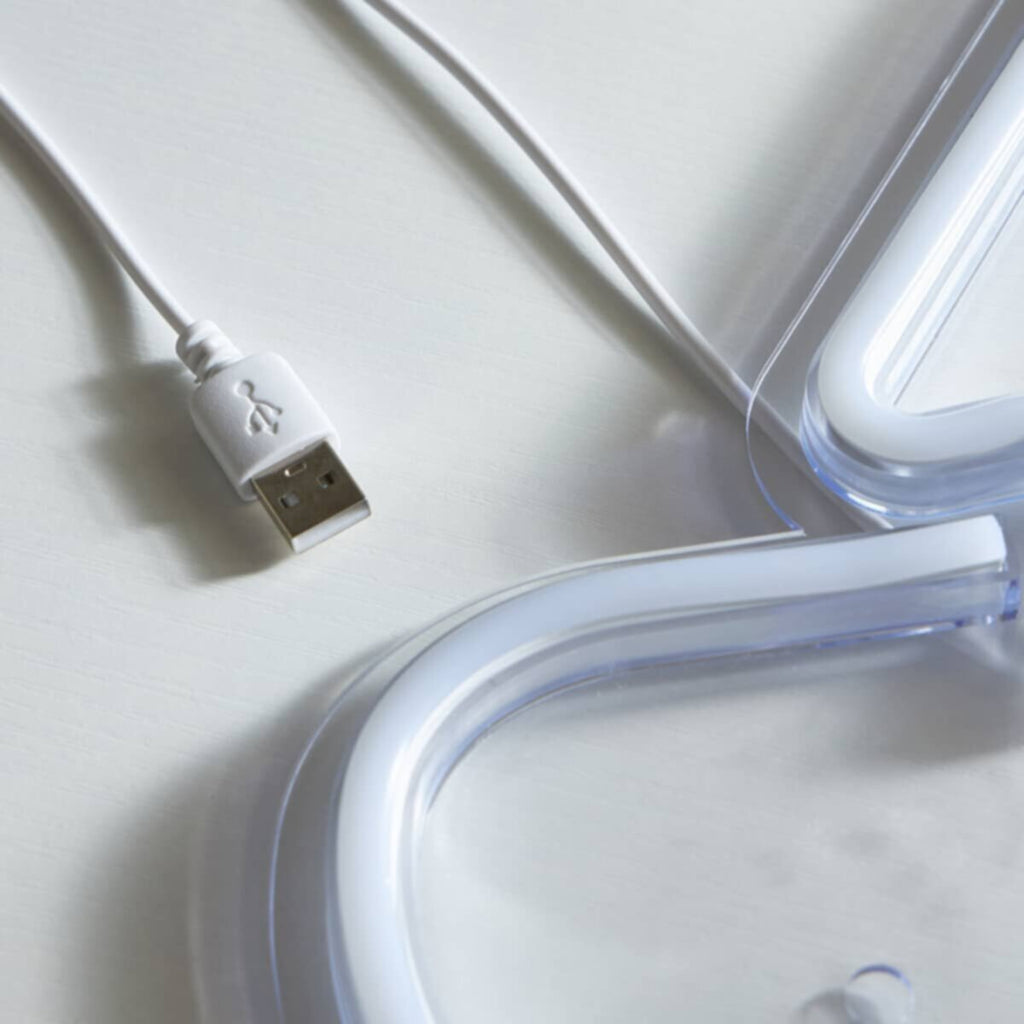Experience a captivating ambience with this LED neon light. This decorative light fixture is crafted from durable polypropylene, ensuring longevity and easy maintenance. With its sleek modern design, it seamlessly complements various room styles, including living rooms, bedrooms, and dining areas. Simply connect it to a USB power source and let the vibrant neon light illuminate your space, creating a warm and inviting atmosphere.The product images have props used for illustrative purposes.