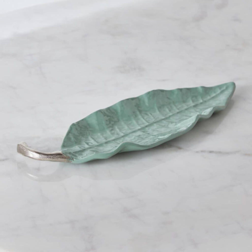 With a sleek and modern design, this decorative platter is perfect for adding a touch of sophistication to your home. Crafted from durable aluminium, this platter is both stylish and functional. Its leaf shape and generous size make it ideal for placing decorative items.The product images have props used for illustrative purposes.