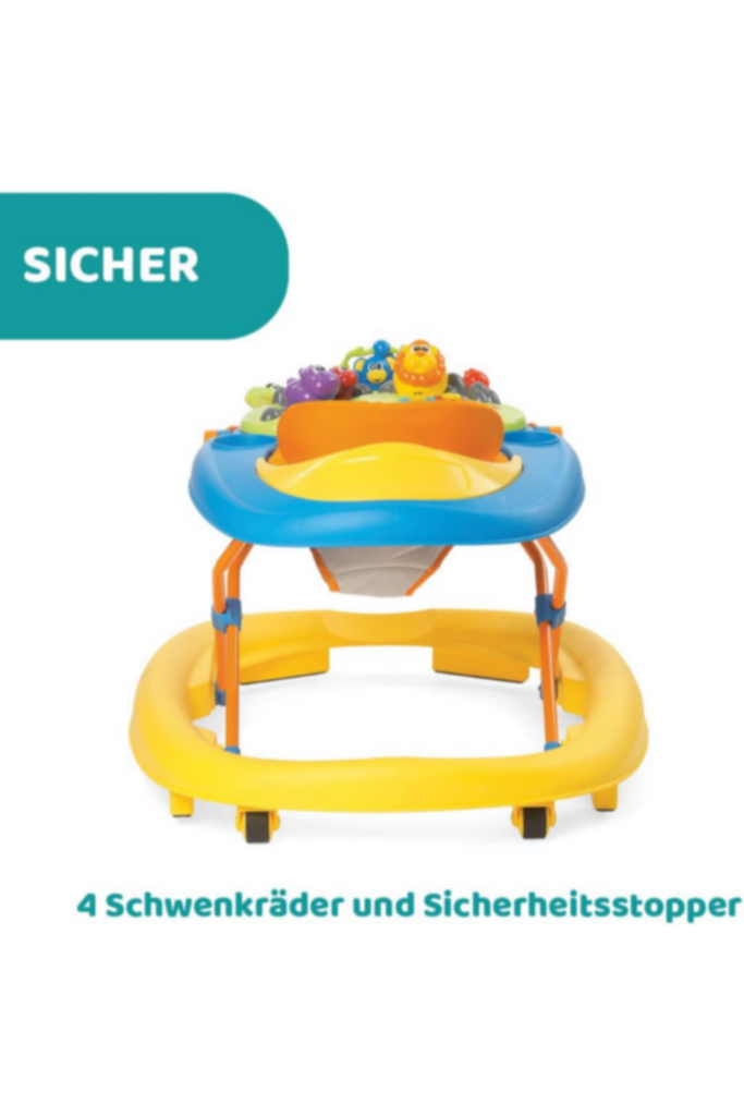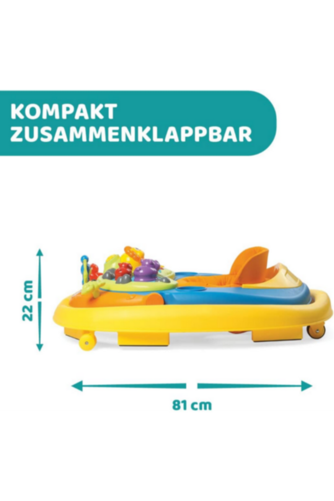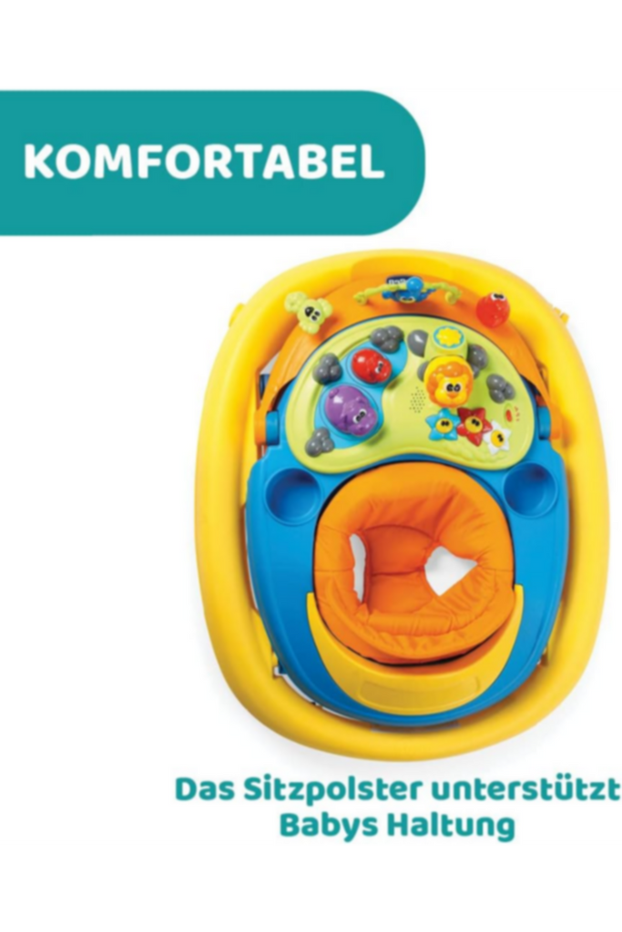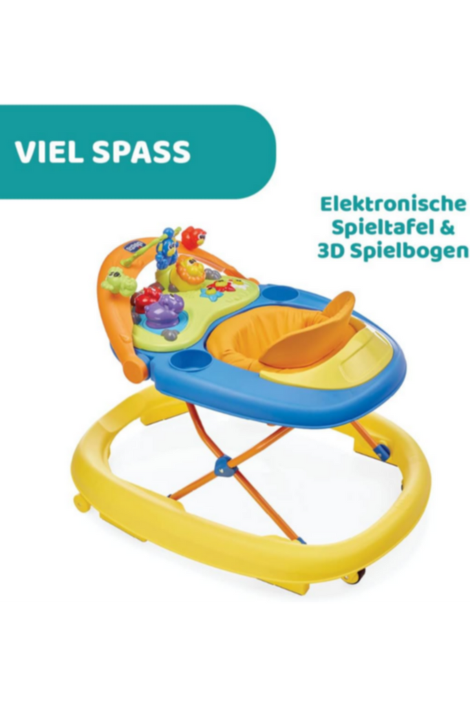 The playing surface increases to embrace the child in a dreamy world of lights and sounds and transport him to the jungle with all his pets. The Chicco Walky Talky Baby Walker is a colorful walker with an electronic toy panel concept with lights, sounds and plenty of activities all in perfect 'jungle style' that will really make your little one happy! It features a toy bar that can be used in 2 positions helping enhance babies tactile, hearing and visual skills. The walker has a well padded seat and can be adjusted in height to suit the build of different children ensuring that their feet touch the floor correctly. The Walky Talky Walker also has front swivel wheels making it easier for baby to guide themselves around and safety akes called 'stoppers' which stop the structure when reaching a step. The play panel is detachable to play also when not in the baby walker.