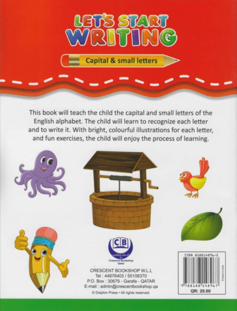 This book will teach the child the capital and small letter for the english alphabet. The child will learn to recognize each letter and to write it. With bright,colourful illustrations for each letter, and fun exercise,the child will enjoy the process of learning.