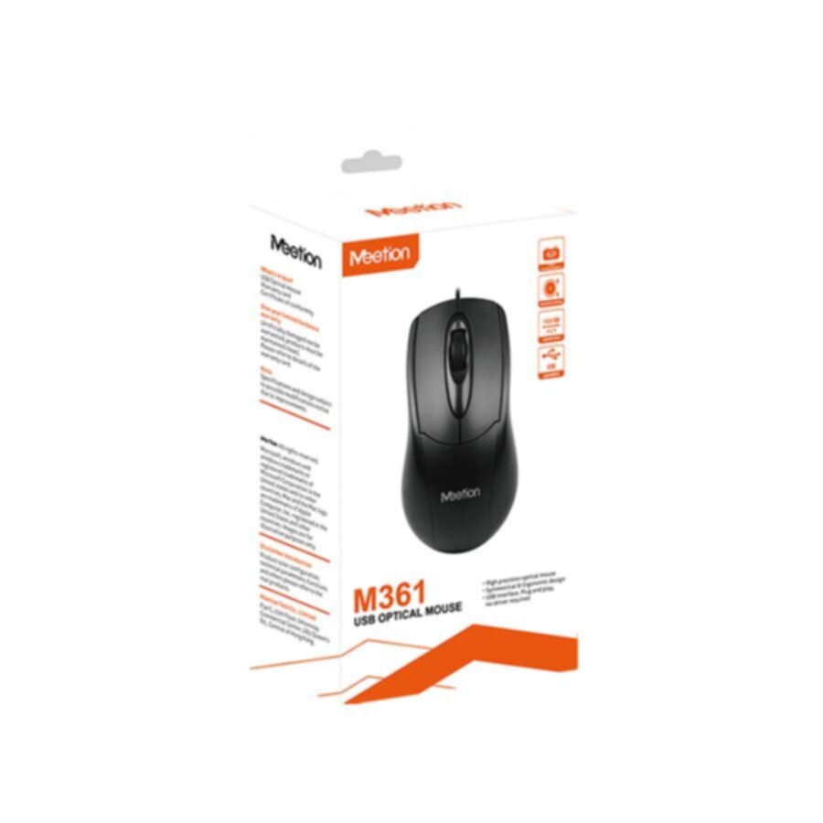 USB Wired Office Desktop Mouse M361. â—† Reliable corded mouse with the optical sensor. â—† Precise performance with 1000dpi resolution. â—† 3 million times the long service life of the microswitch. â—† High polymer wear-resisting foot pads. â—† An elegant design ideal for right and left-handed users. â—† Plug and play for easy start-up. |