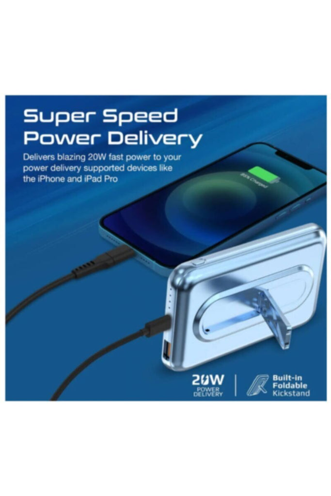10000Mah Magsafe Wireless Powerbank With 20W Usb-C Pd, QC3.0 And Kickstand Blue
