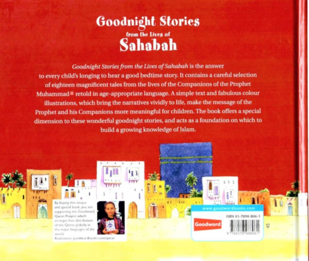 Goodnight Stories from the Lives of Sahabah is the answer to every child?s longing to hear a good bedtime story. It contains a careful selection of eighteen magnificent tales from the lives of the Companions of the Prophet Muhammad retold in age-appropriate language. A simple text and fabulous colour illustrations, which bring the narratives vividly to life, make the message of the Prophet and his Companions more meaningful for children. The book offers a special dimension to these wonderful goodnight stories, and acts as a foundation on which to build a growing knowledge of Islam.
