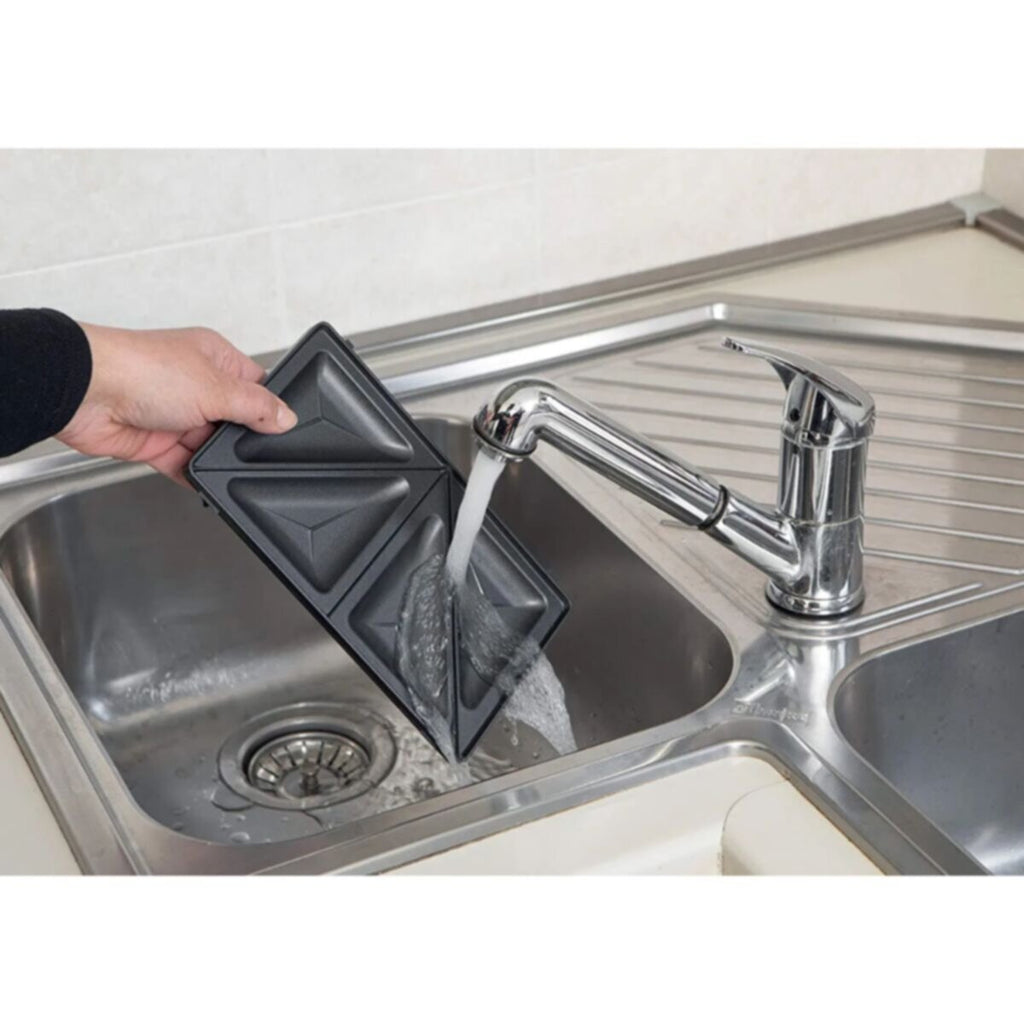 â—† Power and ready indicator lights, easy to remove plates and a locking latch, the snack maker is simple and safe to operate.