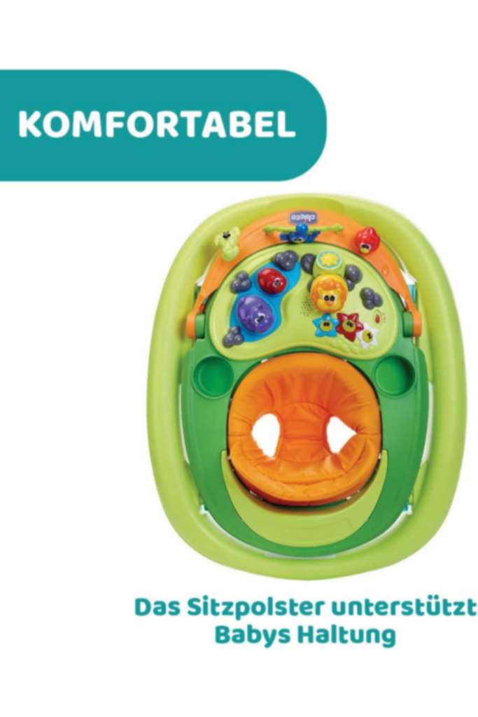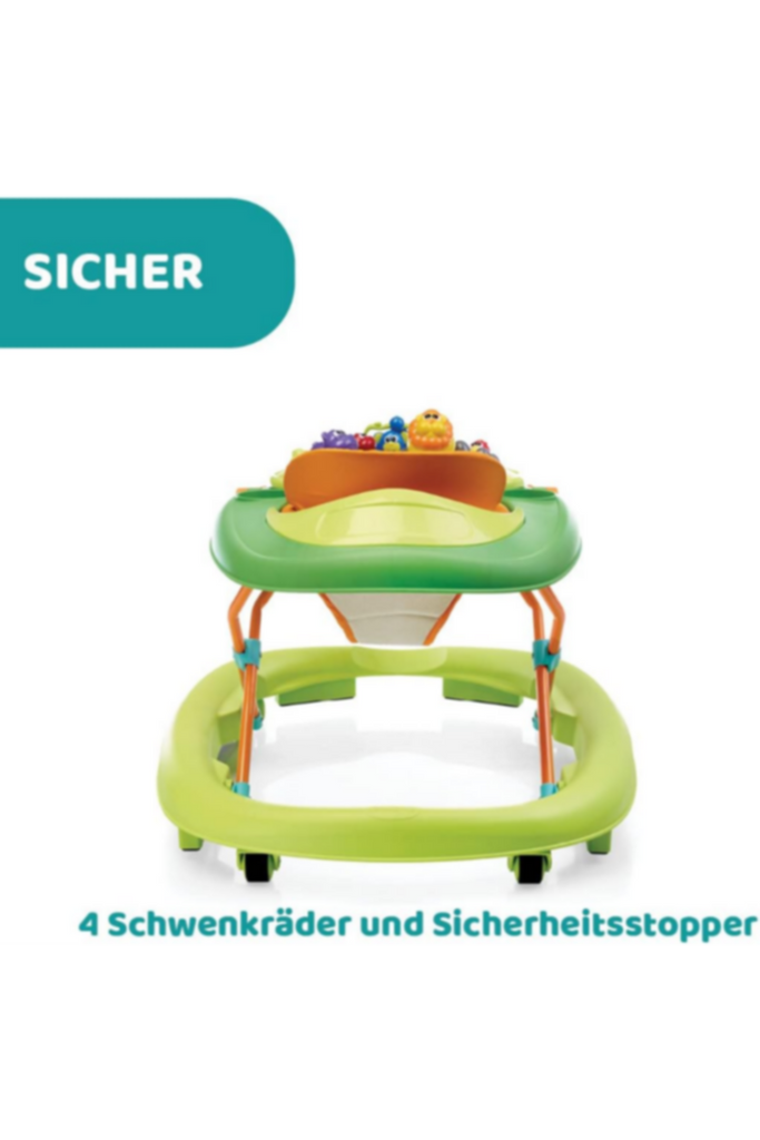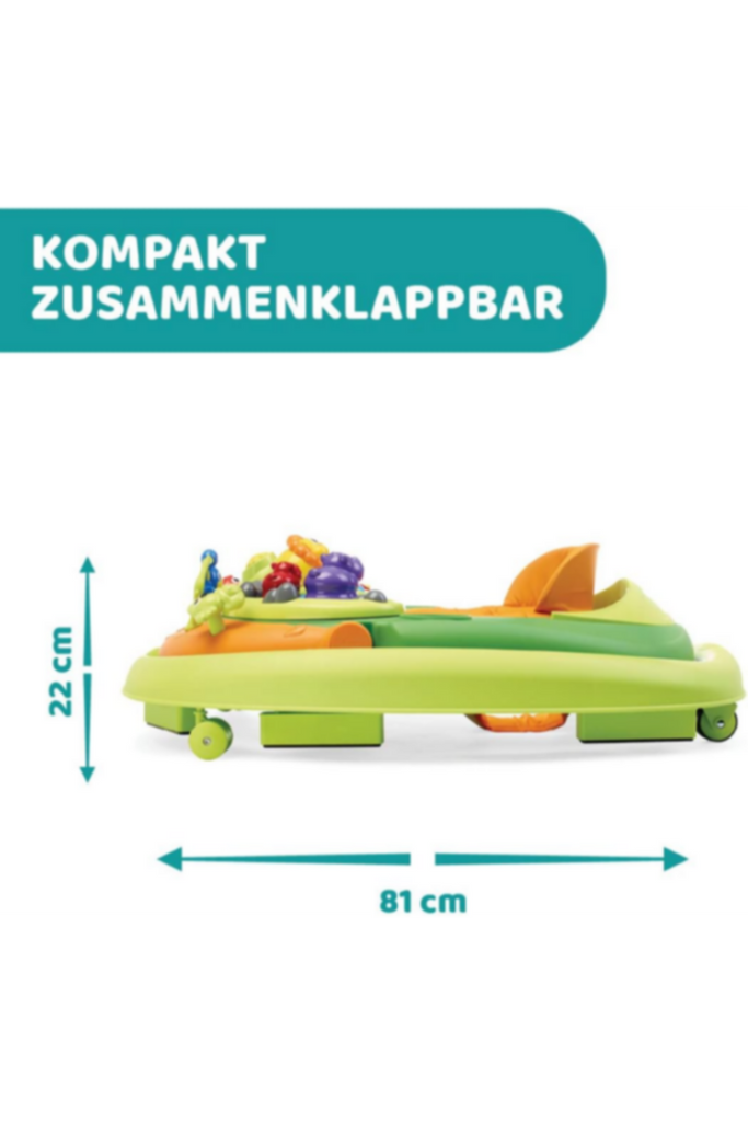 The playing surface increases to embrace the child in a dreamy world of lights and sounds and transport him to the jungle with all his pets. The Chicco Walky Talky Baby Walker is a colorful walker with an electronic toy panel concept with lights, sounds and plenty of activities all in perfect 'jungle style' that will really make your little one happy! It features a toy bar that can be used in 2 positions helping enhance babies tactile, hearing and visual skills. The walker has a well padded seat and can be adjusted in height to suit the build of different children ensuring that their feet touch the floor correctly. The Walky Talky Walker also has front swivel wheels making it easier for baby to guide themselves around and safety akes called 'stoppers' which stop the structure when reaching a step. The play panel is detachable to play also when not in the baby walker.