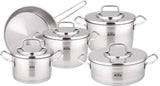 1. Casserole (16x9.5cm / 1.9lt) with lid.2. Casserole (20x12cm / 3.7lt) with lid.3. Casserole (24x13.5cm / 6.1lt) with lid.4. Low Casserole (24x8cm / 3.6lt) with lid.5. Fry Pan (24x6.5cm / 2.9lt) without lid.