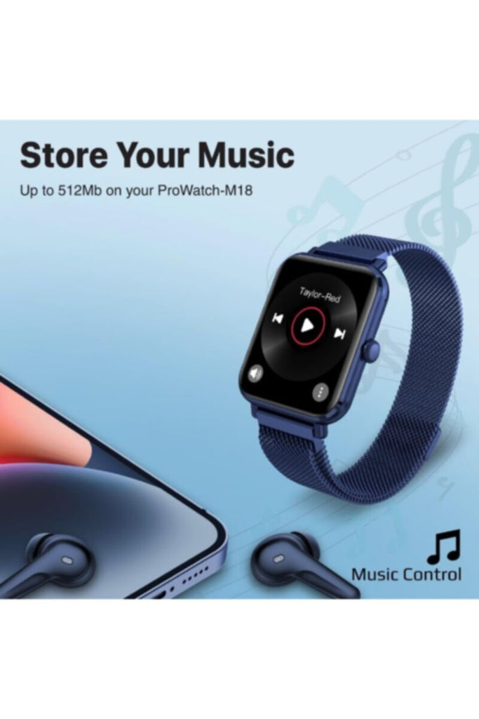 With a heart rate sensor, pedometer sensor, blood oxygen level sensor, and sleep tracker, the ProWatch-M18 is designed to help you lead a healthier lifestyle. Stay connected with Bluetooth 5.3 Technology and enjoy the hands-free function. 1.78 Inch Hi-Res Display makes this smartwatch easier to see and use. IP68 Water and dust resistance ensure the ProWatch-M18 is the perfect companion for every adventure. Additionally, you can store your music files up to 128Mb on your ProWtach-M18 and listen on the go. Smart on the inside, and fashionable on the outside, the ProWatch-M18 is everything you need, in one device.