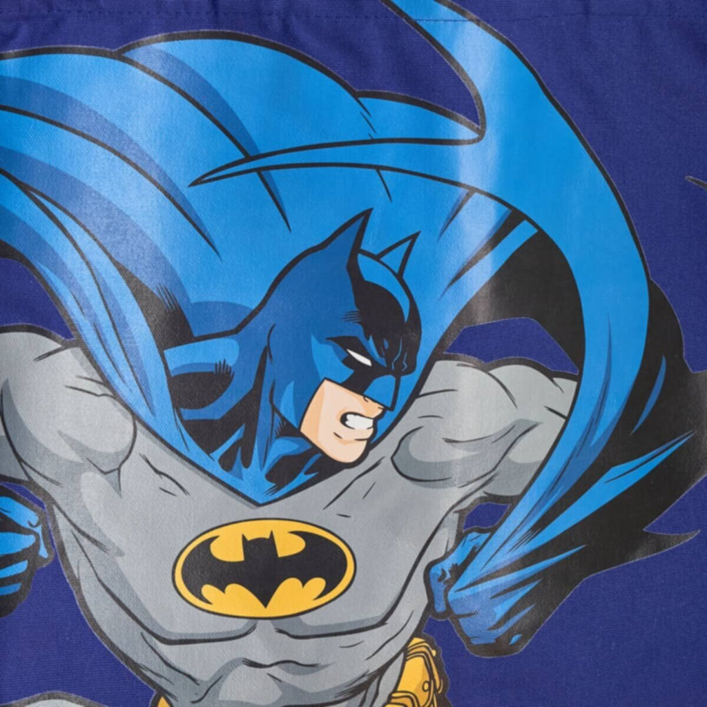 This Batman cotton canvas shopping bag is a great way for your kid to carry their belongings in style. It is made from durable cotton canvas and features a bold Batman graphic print. The bag is also spacious so your kid can easily fit all their essentials.The product images have props used for illustrative purposes.
