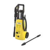 Compact and lightweight pressure washer for outdoor cleaning jobs. Features 6m high pressure hose and dirt blaster lance for removing stubborn dirt from hard surfaces, such as stone and brickwork. On-board storage keeps trigger gun, hose and lance neatly stored away.