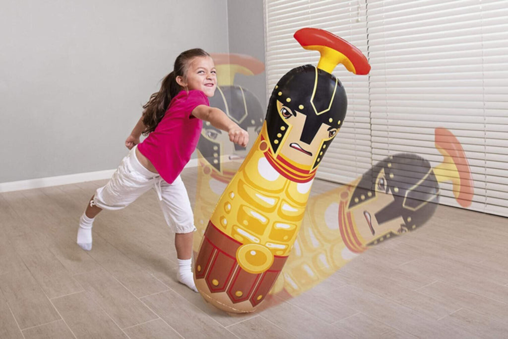 The Up In & Over Gladiator Bop Bags are inflatable punching bags for high energy, Colosseum-loving kids. The three assorted options are inspired by the Roman gladiators of ancient times. These bags are built for punching, kicking and tackling - yet they're incredibly safe and possibly therapeutic for rambunctious boys and girls. Just fill the built-in water chamber for a stable base that's much less of a hassle than sand. The safety valves provide air retention during the bop bag action while speeding up inflation and deflation.