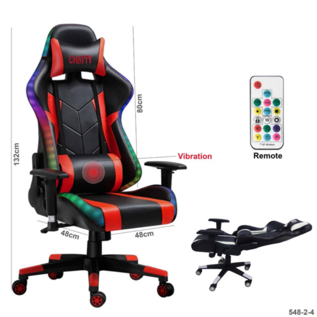 Take your gaming setup to the next level with the Adjustable Comfortable Luxury RGB Gaming Chair. Designed for maximum comfort, this chair comes equipped with vibrant RGB LED lighting, a vibration massage feature, and a remote control for easy adjustments. Its ergonomic design ensures proper posture while the adjustable height and reclining features provide personalized comfort.