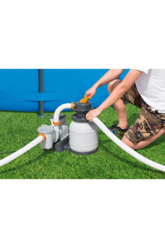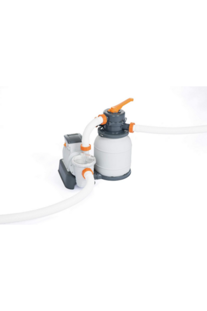 The Flowclear 1500 gal. (5678 L) Sand Filter from Bestway is a highly efficient way to keep clean water flowing through your above ground pool. It is a more cost effective solution as the pump uses silica sand instead of a traditional filter cartridge. While those cartridges need to be replaced every 2 weeks, silica sand lasts up to 3 years. The sand will trap dirt and debris, but a pre-filter strainer basket catches larger things so that the pump will last longer. The filter also comes with the ChemConnect Dispenser, which maintains clean, healthy water by providing a stable level of chlorine that is evenly dispersed throughout the pool.* This product comes pre-assembled, and is compatible with most 1,100-42,300 L (300 - 11,200 gallon) above ground pools, as it comes with an adapter for pool valves with an outer diameter of 3.8 cm (1.5 in). The sand is not included with this filter - required sand size is #20 silica sand, 0.45-0.85 mm, approximately 9 kg. The filter also works wonderfully with Bestway’s Polysphere Filtration Balls.