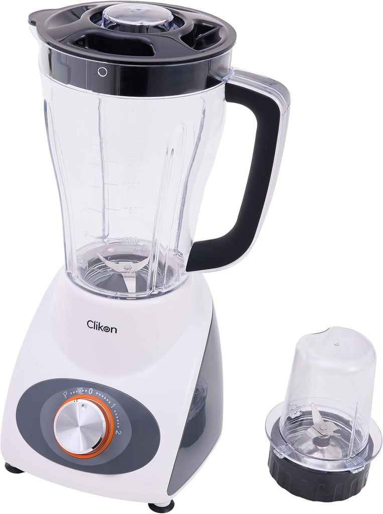 The Clikon CK2682 2-in-1 Blender is a versatile kitchen appliance designed to simplify your food preparation tasks. Equipped with a powerful 500W motor, it efficiently handles blending and grinding functions. The 1.5-liter unbreakable jar is ideal for preparing smoothies, soups, and sauces, while the included grinder attachment handles spices and coffee beans with ease. With two-speed settings and a pulse function, you have precise control over the consistency of your mixtures. Safety features like overload protection provide peace of mind during operation. Its compact design and durable construction make it a reliable addition to any kitchen.