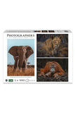 â—† The 3, 1000-piece puzzles included within this bundle feature a wise orangutan, a weary male lion, and an inquisitive baby elephant