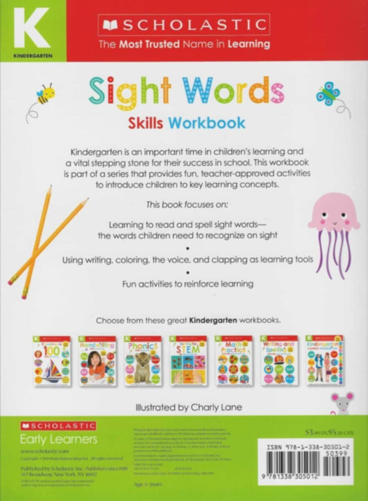 Build and develop essential skills for kindergarten success with this activity workbook all about sight words from Scholastic Early Learners! A strong educational foundation helps ensure a child is able to benefit from the learning opportunities available at kindergarten. In Kindergarten Skills Workbook: Sight Words, children in kindergarten can practice their sight words in a more in-depth way. The bright colorful pages with a delightful blend of photographs and illustrations make these workbooks some of the most eye-catching and engaging available for this age group. And two pages of stickers will help reinforce the learning and keep little ones excited and ready for the next step in school!Scholastic Early Learners: Interactive books for hands-on learning. Perfect for babies, toddlers, preschoolers, kindergartners, and first graders, too!