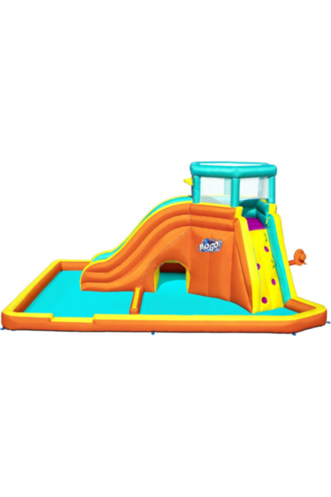 Bestway mega water parks allow parents to bring the party home and turn their lawn into a backyard bonanza With built in blowers and quick, two minute inflation times, these products are the ultimate party starters. Kids can bounce, slide and play all day long with all the great features that Bestway mega water parks offer. From sprinklers to water blasters, hidden tunnels to basketball games, these water parks provide endless hours of splashing fun for families.