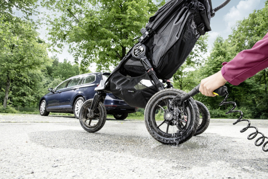 For everyone who also needs a cleaning solution on the go: the compact and lightweight pressure washer from Kärcher. Thanks to the integrated lithium-ion battery and the removable, convenient 7-litre water tank, you can also clean, for example, your bicycle and dirty hiking boots without a power or water connection. With a gentle yet efficient low pressure flat jet, the pressure washer is ideal for sensitive surfaces.