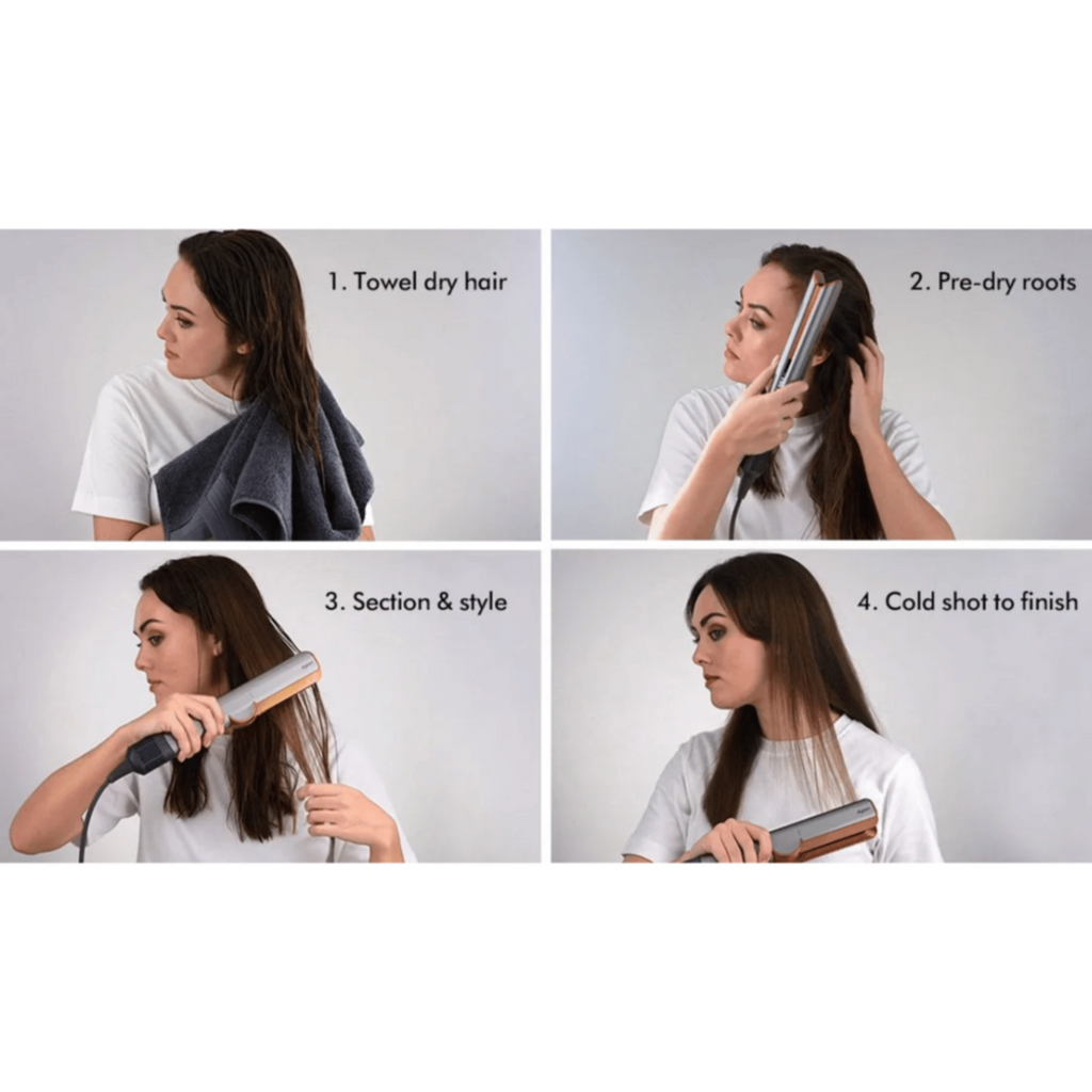 ◆ No hot plates.No extreme heat: Our latest hair care technology uses high-pressure airflow to straighten hair as it dries. Air is precisely heated and projected evenly through the tress as you style – with no need for extreme heat.