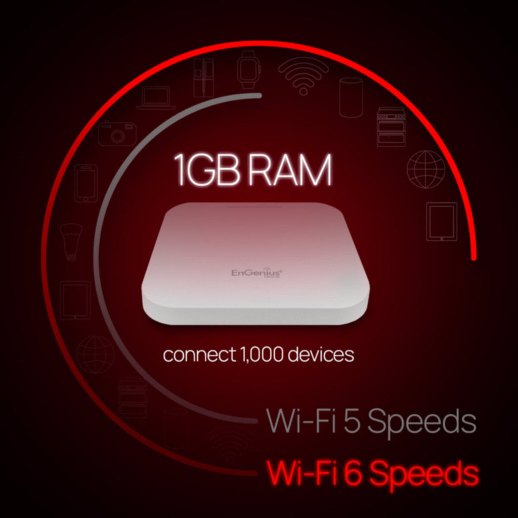 EnGenius EWS357AP 802.11ax WiFi 6 2x2 Managed Indoor WiFi Access Point features 802.11ax technology, which deepens and expands the capabilities of Wi-Fi and utilizes EnGenius enterprise-level management and AP features. The sleek, low-profile WiFi ax AP is loaded with new hardware components to run more efficiently and consume less power for maximum theoretical speeds of 574 Mbps (2.4 GHz frequency) and 1,200 Mbps (5 GHz frequency). To give your network elevated security, WPA3 and WPA2-AES make connecting client and IoT devices more secure and easier.
