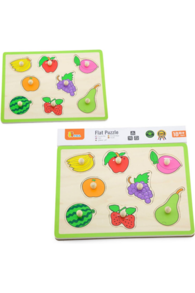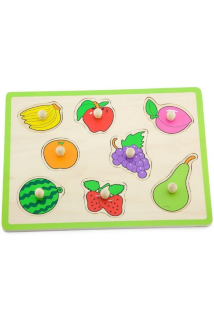 Each puzzle piece is designed to make easier for little hands to grasp and match the colorful shapes to the cutouts on the board. Available in Wild Animals, Transport, Fruit, Shapes and Farm Animals.
